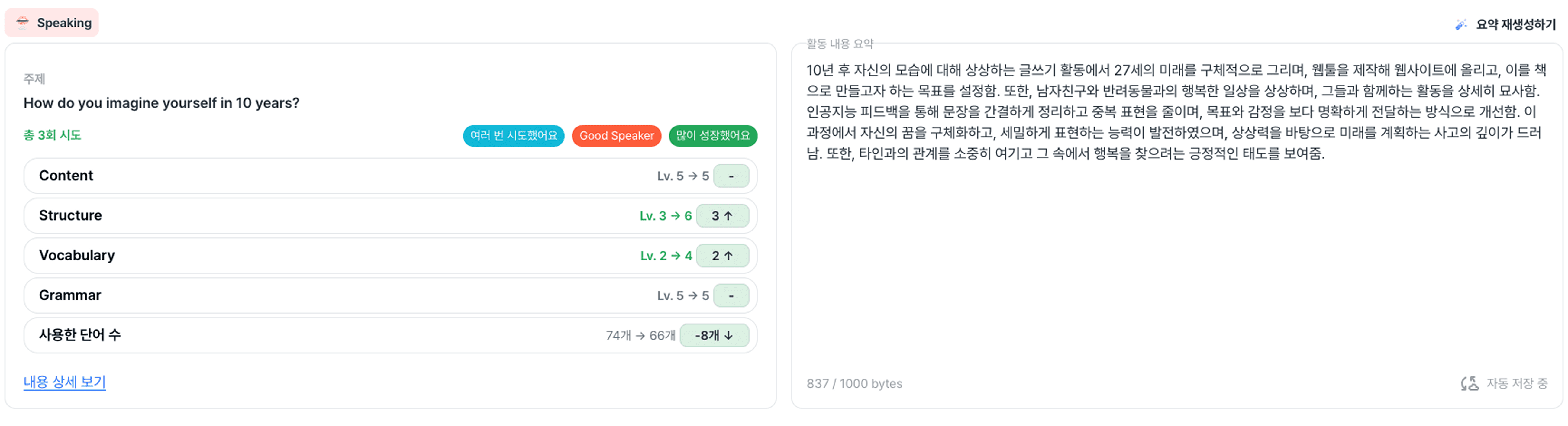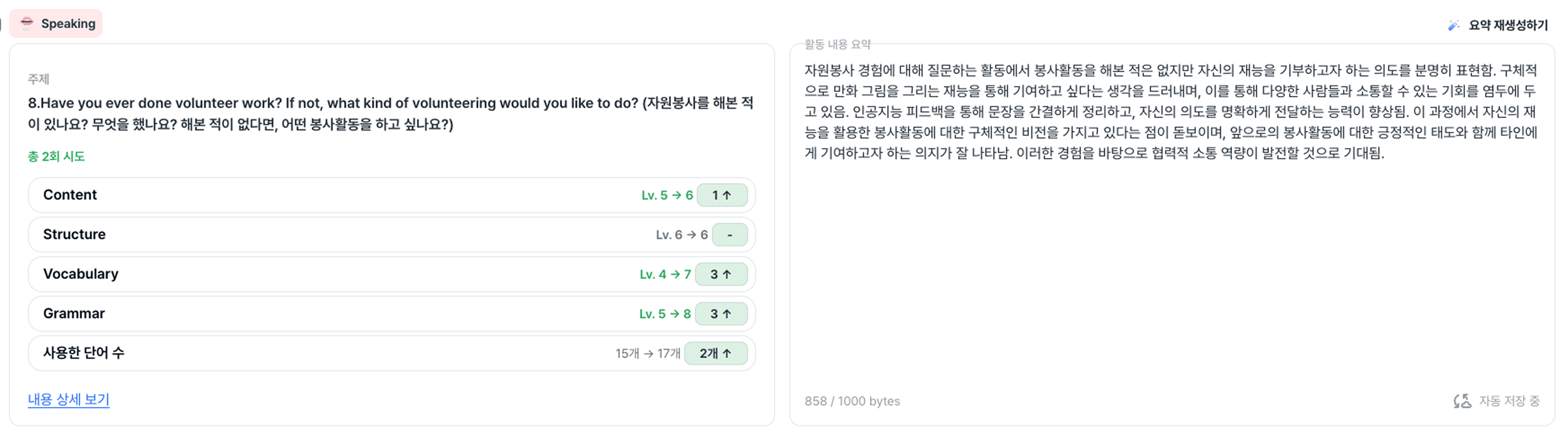 학생이 어떤 성장이 있었는지, 어떤 내용에 대해서 스피치를 했는지를 요약해서 보여주다보니 더 효율적으로 세특을 작성할 수 있었습니다.