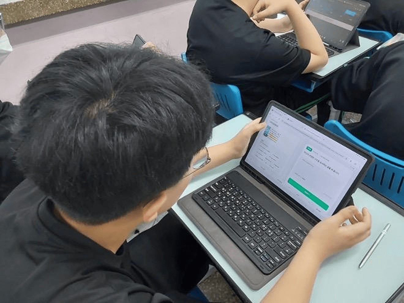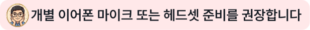 다만, 가능하다면 학생 개별 이어폰 마이크나 헤드셋을 준비하도록 안내하는 것이 좋습니다. 주변 소음의 영향을 줄이고 음성 인식 정확도를 높여, 학생들이 자신의 발화를 보다 정확하게 점검할 수 있고 반복 연습의 효율성도 높아집니다.